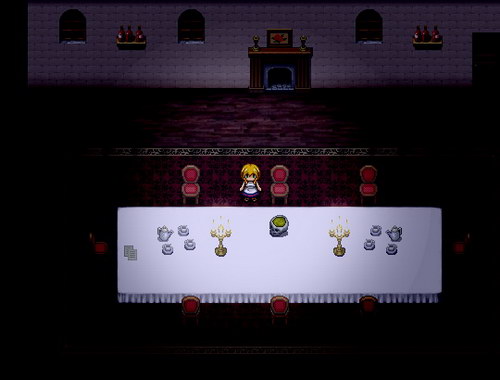 48、往上一直走,调查门上楼,【开门】调查右上有发光点的日记,一段剧情后出现没有下半身的少女,快速逃跑出门。(路线已经和游戏最初不同,只需下一层楼就到一楼,期间在食堂会有椅子,各处会出现破洞来妨碍你记得躲避,可在此处与魔女周旋争取时间)