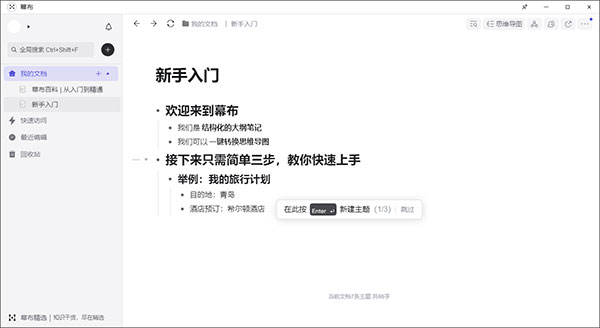 幕布通过大纲来组织内容,无论是读书笔记、活动策划、会议记录还是待办清单,都能完美胜任,这种更具条理性的写作方式,会带给你全新的体验,极简可靠