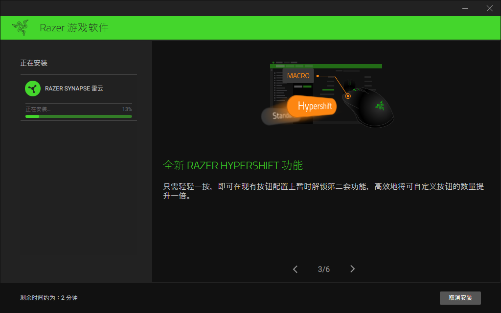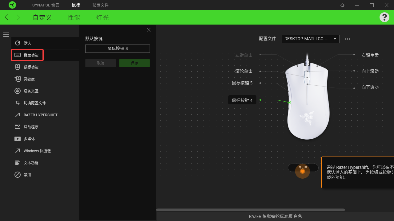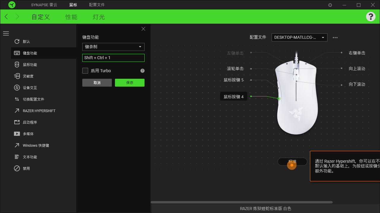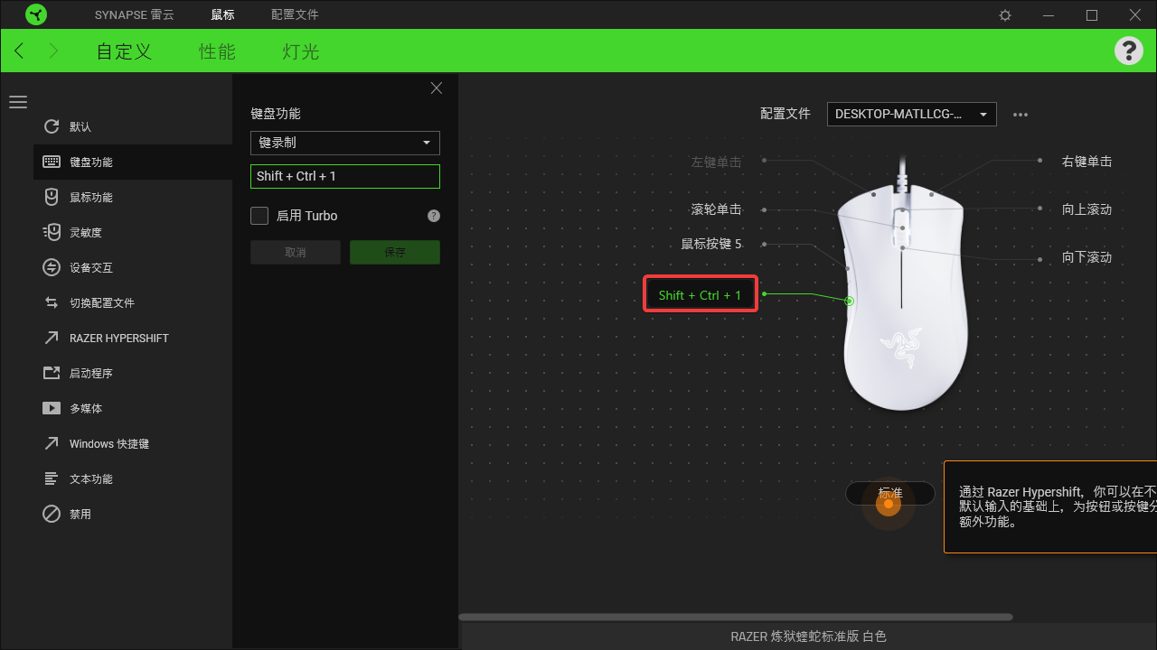 Hypershift 功能:只需轻轻一按,即可在现有按键配置上暂时解锁第二套功能,高效地将设备上的可自定义按键数量提升一倍,配合宏设置功能,能够进一步实现强大的键鼠自定义功能。