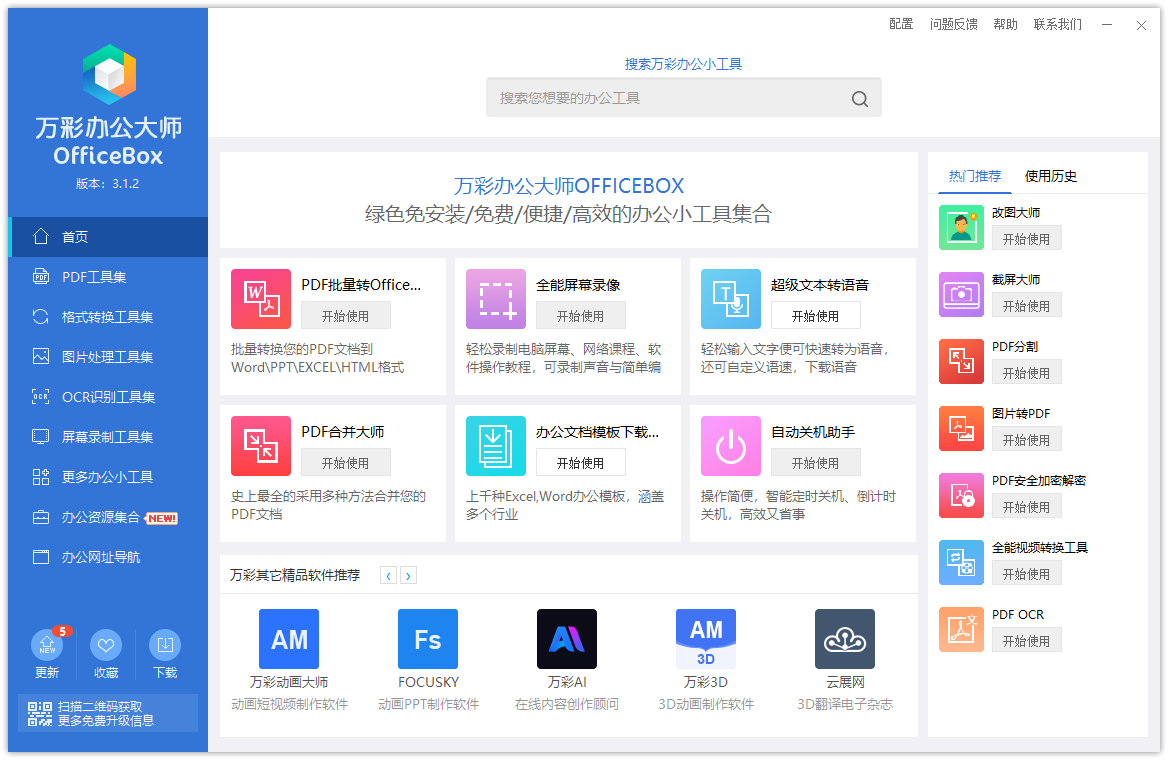 万彩办公大师绿色版功能
