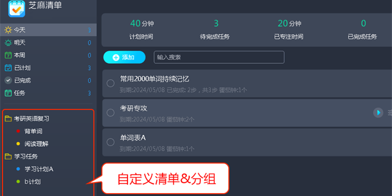 创建分组&自定义清单,让事情更清晰的归类,管理起来更方便。