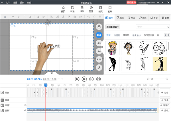 软件中独有的剪纸效果,让视频中的图片更加立体,呈现效果更加;生动的手势动作动画,让白板动画视频不再单调;一键分享手势动画到朋友圈,让更多人欣赏你的创意动画视频。