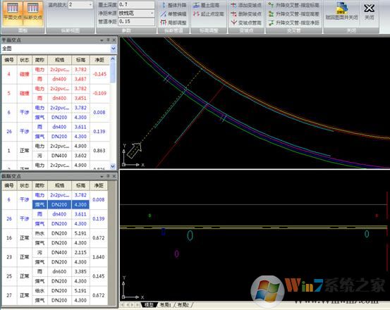 选取界面上的一段管道,根据走势生成对应的纵剖面图,并且可以在剖面图上面直接做调整,然后将调整好的剖面图返回平面图中,从而在剖面图中解决了管道打架等可以发生的碰撞现象。 高级设置里面可以对纵断面的绘制做详细的设置,包括行间距,字高字宽及所要列出的表头项。