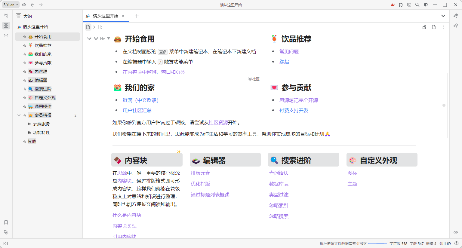 在思源中,唯一重要的核心概念是内容块。通过排版格式即可形成内容块,这样我们就能在块级粒度上对思绪和知识进行整理,同时也能方便长文阅读和输出。