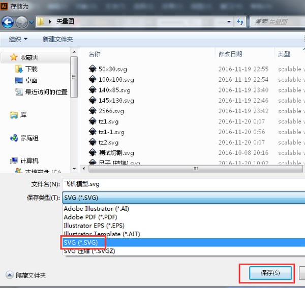 第三步:格式选择DXF,然后点击“保存”。亲保存DXF格式时尽量选则版本老一些,除非你的Illustrator软件比你的CAD软件还要新。