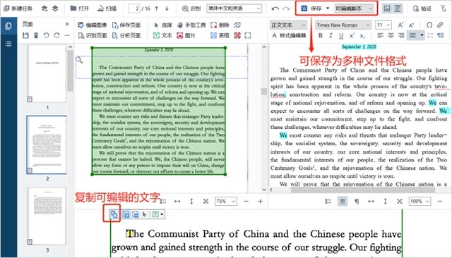 5、最后,就能根据需求提取扫描框内的文字、保存为多种格式的文档啦~