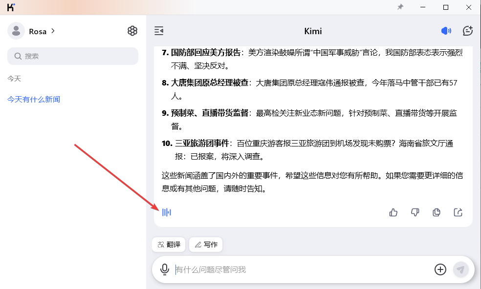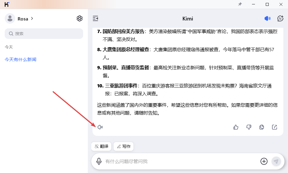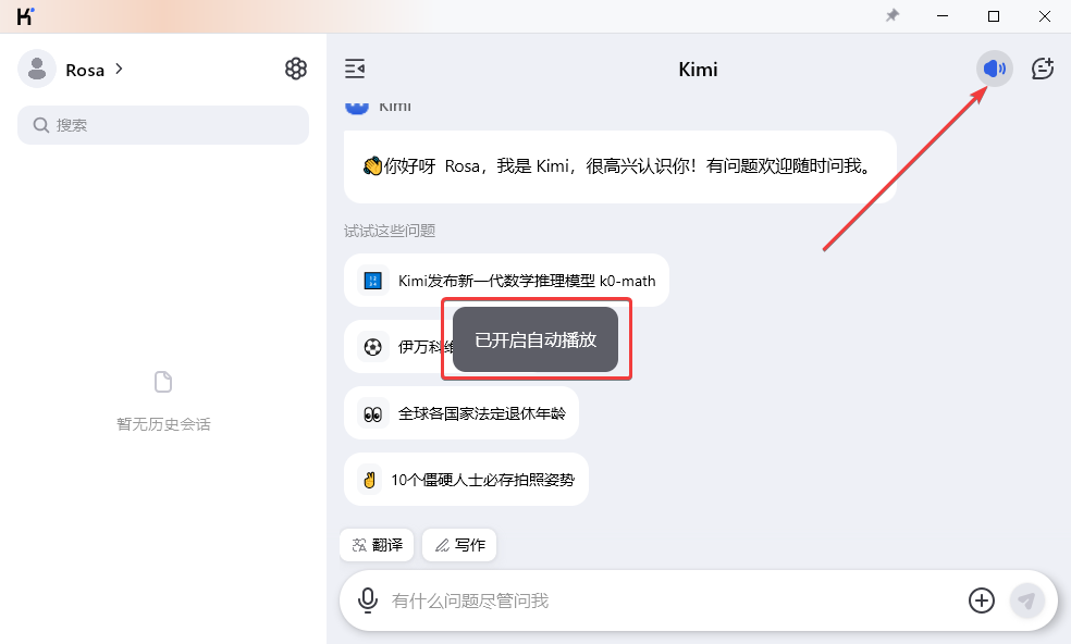 1、打开Kimi智能助手并登录,点击右上角的喇叭,显示已开启自动播放,在回答你的问题时将会自动进行语音朗读