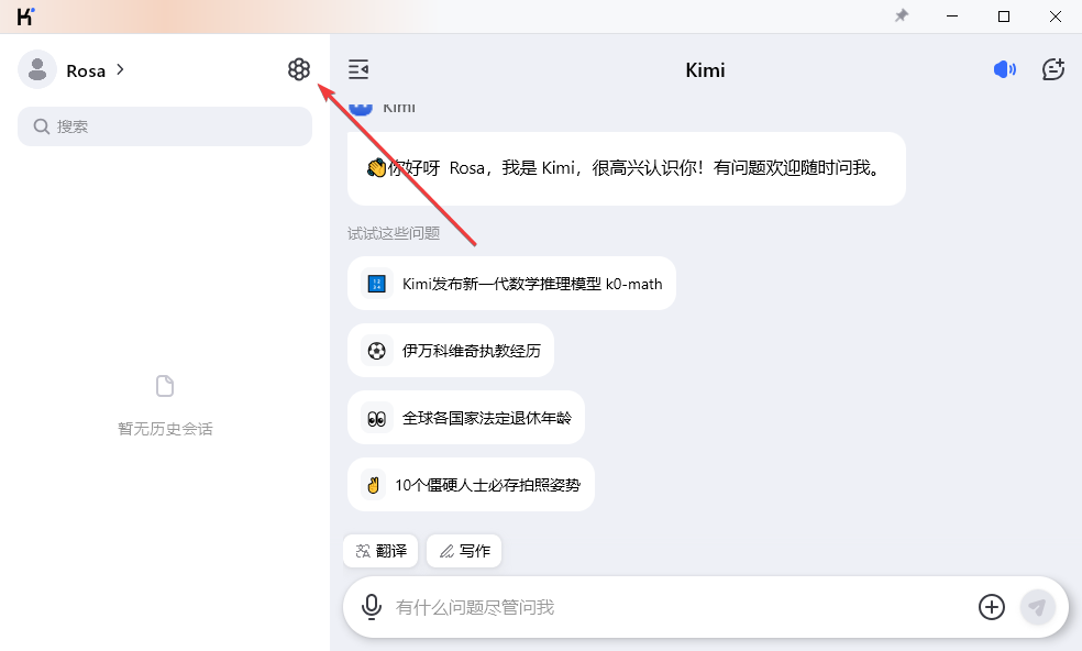1、打开Kimi电脑版,点击左上角像一朵花的图标