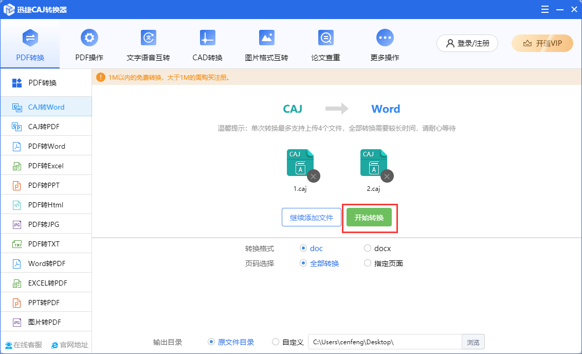 一键添加CAJ文件,可批量转换为DOC或DOCX格式的Word文档,还可指定页面或全部转换,轻松阅读CAJ文件
