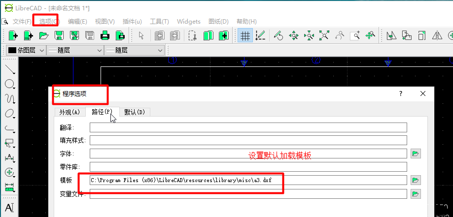 1、设置文件模板,文件模版就是一个dxf 文件可以进行单独编辑和创建。