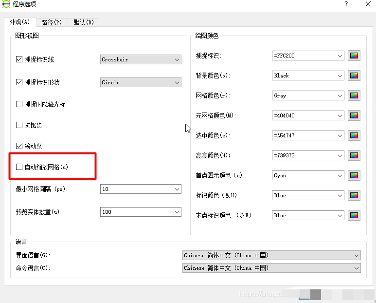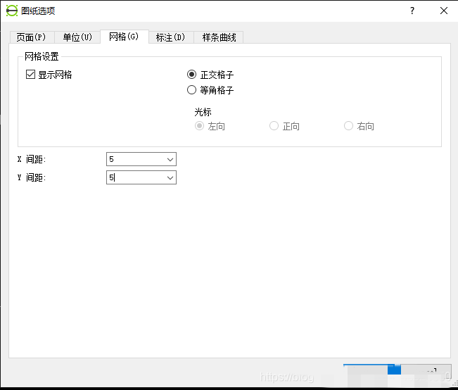 2、在图纸选项中勾选显示网络,x和y设置为5,如果设置为自动,那么在放大缩小图纸时,网格会发生改变。设置完成后,栅格为5,且不会因为缩放发生变化。正交格子为2D视图,等角格子为3D视图。