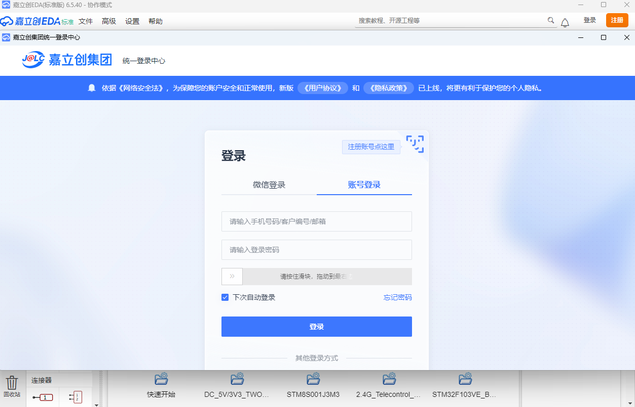 2、支持用户注册个人账号登录该软件进行电路设计以及购买电子设备