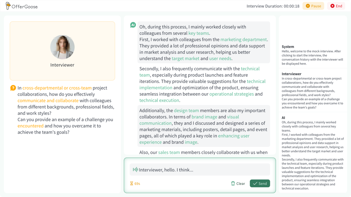 多面鹅适用于多种场景,包括线上答辩、模拟面试,以及为正式面试做准备,支持主流的远程视频、面试平台。即使是线下面试,用户也可以利用我们的产品进行充分的准备。对于技术类和细节问题,AI可以提供技术概念和框架,使用者再结合自身知识进行回答,从而展示出更全面的能力。