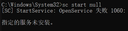 出现此问题请先管理员方式运行命令提示符,输入sc start null然后回车