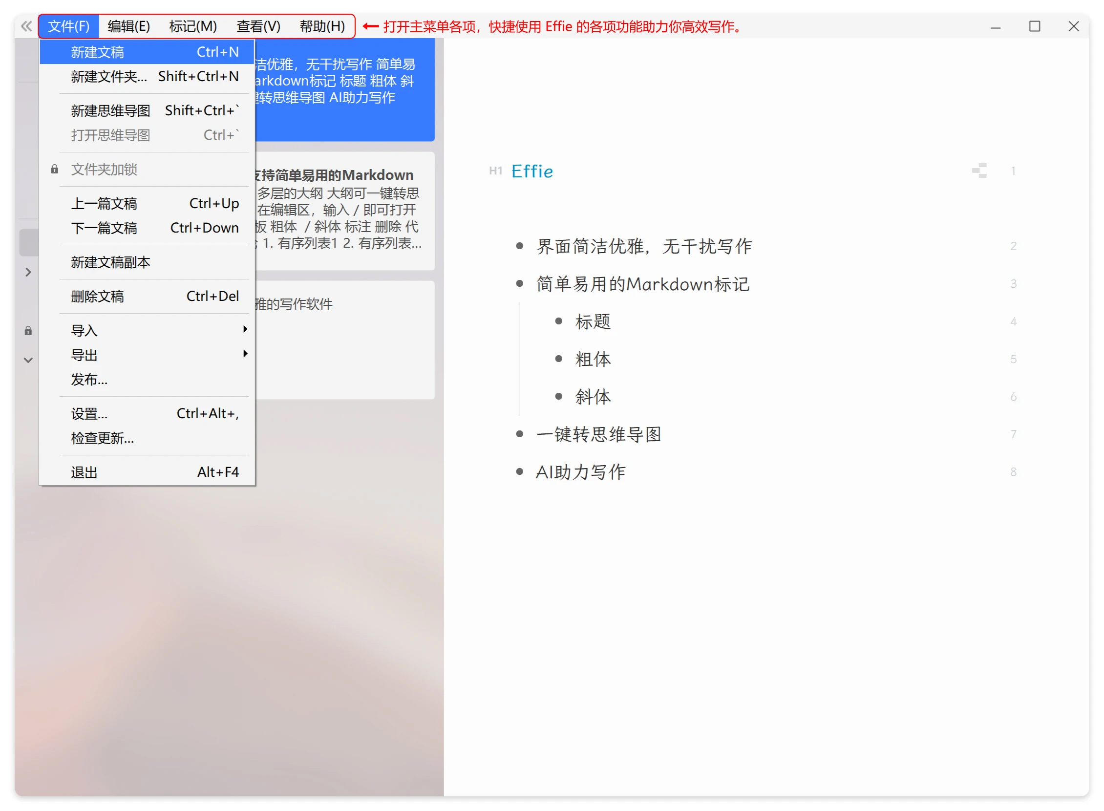 Effie是一个强大的写作软件,为用户提供免费的版本,可以使用大部分的功能,助力写作。内置AI功能,可以一键完成内容创作,还能对已有的文章进行改写、润色、续写,功能强大。支持markdown语法,轻松完成专业的内容写作,适用于知识库、技术手册等文档的创建。还有思维导图、读书笔记等功能待你探索。