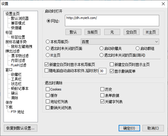 7.6. 按键Alt+M,可调出上次退出未关闭的网址列表,可双击打开其中某个。MyIE9起始页也有上次未关闭列表。
