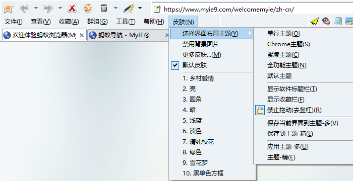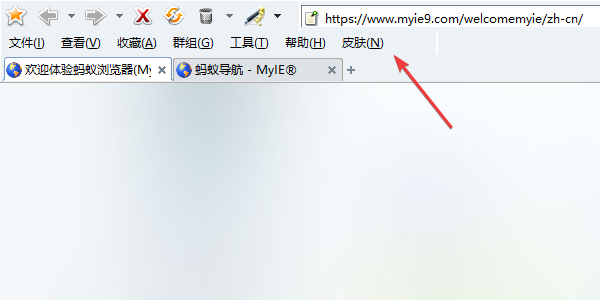 1、打开蚂蚁浏览器,点击菜单栏的皮肤