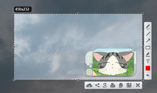 1、在桌面划定截图区域,点击两个按钮即可快速截取。