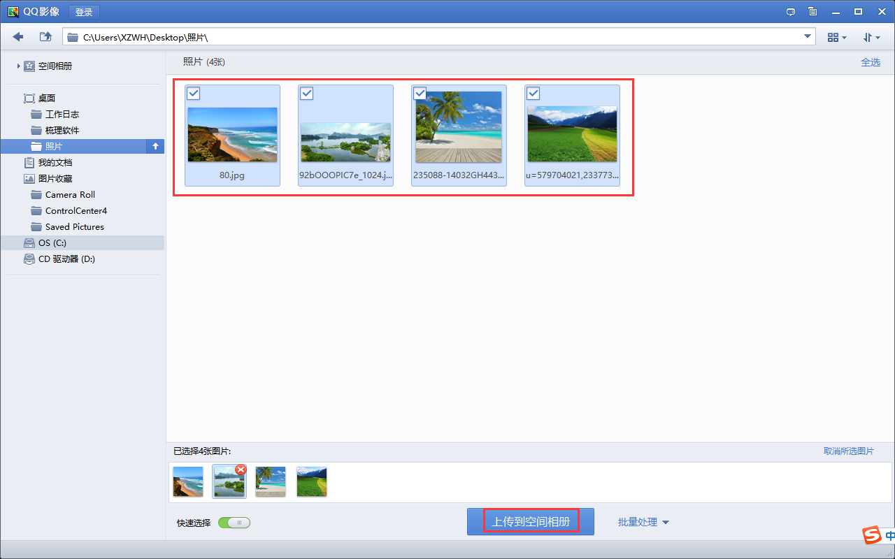 2、挑选准备上传至空间的照片。