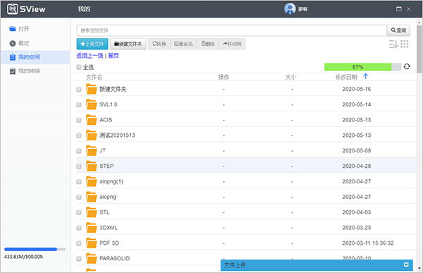10、游客登录下,我的空间可进行上传文件、新建文件夹等操作。