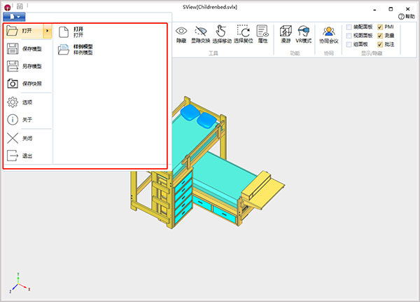 4、文件模块有打开(含打开和样例模型)、保存模型等多种功能,方便管理图纸。