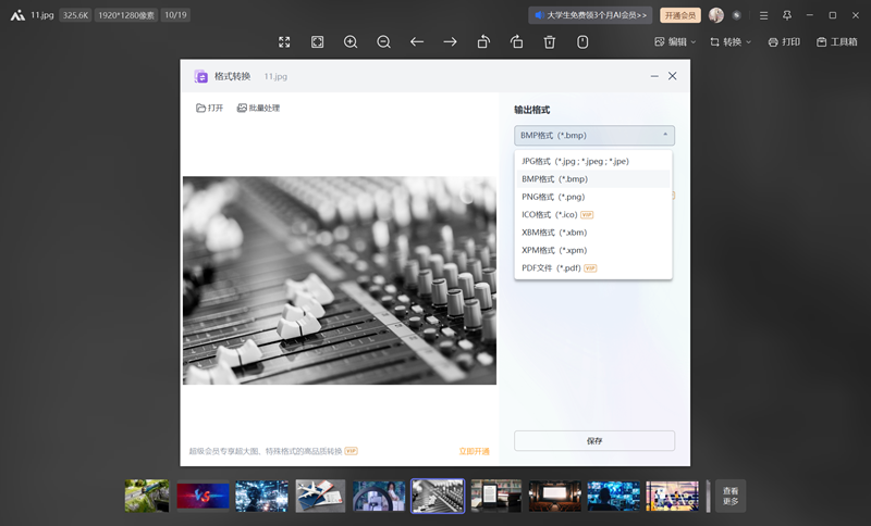 2、进入转换页面后,下拉选目标格式(如 jpg、bmp、png 等),点确定完成,新图与原图同目录。