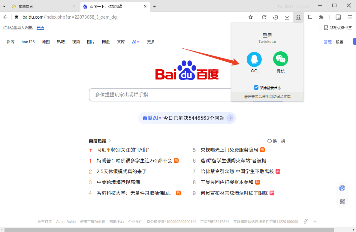 4、登录界面支持 QQ 与微信授权,完成登录后浏览器设置可同步至云端存储,便于多端访问。