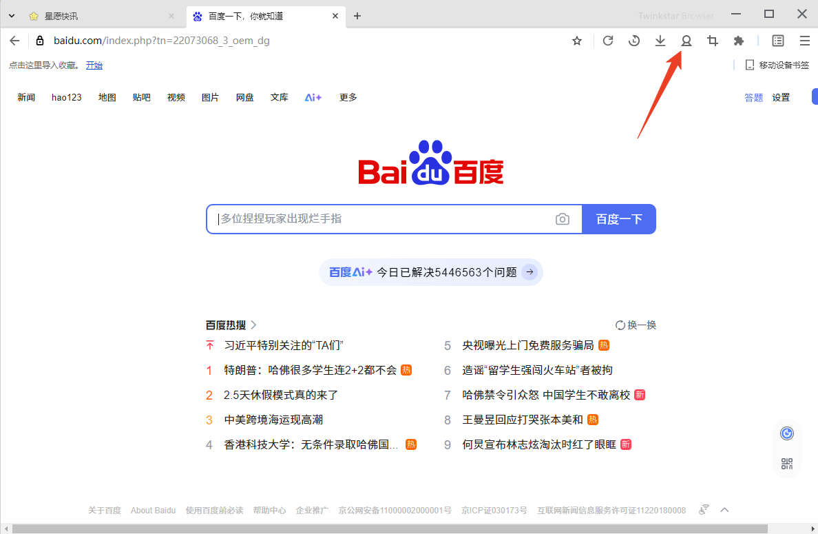 1、首次开启浏览器呈现初始界面,若需更换首页,可至设置中调整默认主页内容。