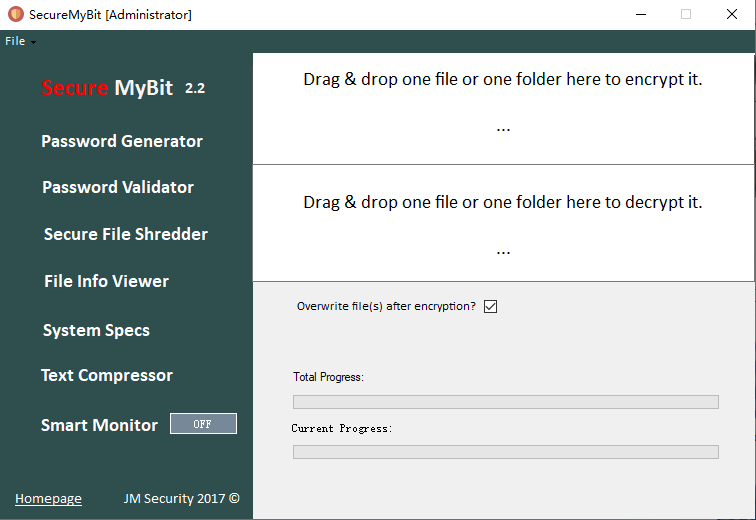 SecureMyBit是一款功能强大的文件加密工具。可以用AES 256位加密方法的密码对任何文件加密和解密。软件有安全强大的随机密码生成器。有安全文件粉碎机可永久删除文件,提供安全虚拟键盘。能获取文件信息,快速压缩文本。加密文件或文件夹时,软件实时检查修改等操作,很方便,有需求请下载体验!