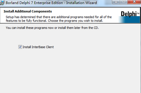 小提示:有时由于未曾安装过interbase数据库,在安装d7时也会要求安装,一路点击下一步即可