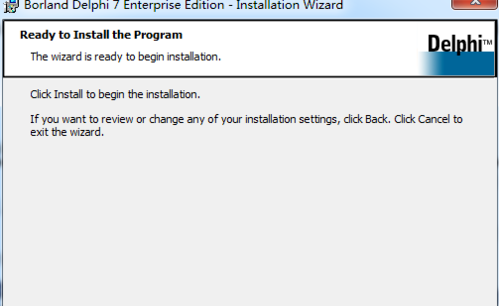 点击install,选择安装,安装过程中系统将自动进行程序各个部分的配置,配置完成后,便可以在开始菜单上找到,delphi的图标,双击,打开编程环境