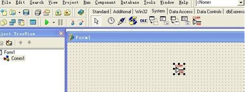 再到控件快捷条上找到system并按下,就可以看到刚加载的串口控件了,点击一下并放到窗口里面就可以使用了