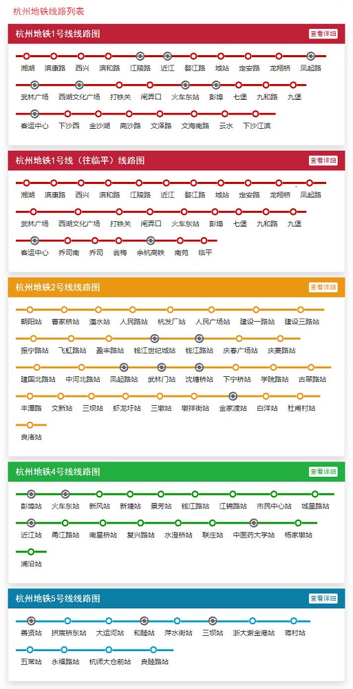 截至2020年4月,杭州地铁有杭州地铁1号线.杭州地铁2号线.杭州地铁4号线.杭州地铁5号线.杭州地铁16号线,共5条线路投入运营。