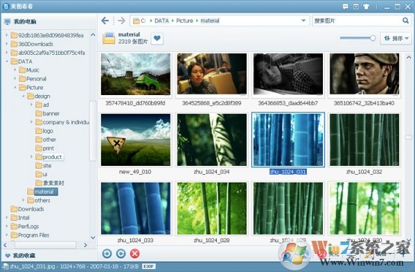 美图看看采用独创的缓存及预加载技术,浏览图片过程中占用内存不到同类软件的一半,低配置的电脑上也可流畅看大图,图片再多也不怕!