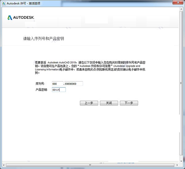 Auto CAD2019序列号和密钥:
