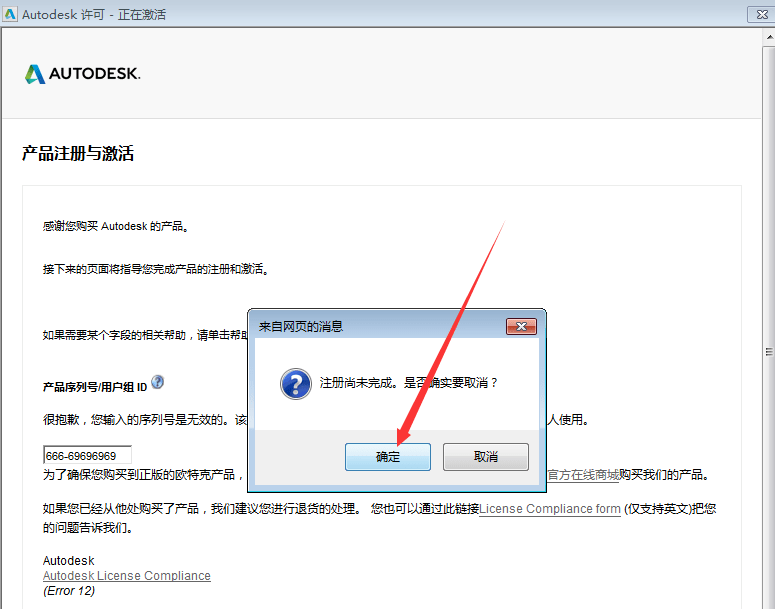 4.正在激活点击关闭按钮并确定,如图所示