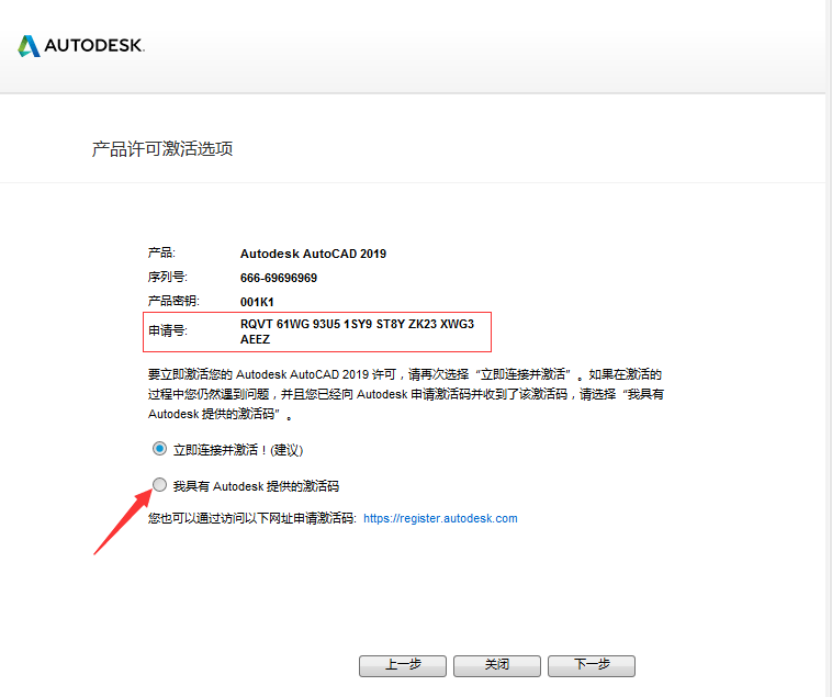 6.下图中选择我具有激活码并复制申请号,如图所示