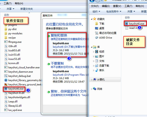 3、打开keyshot 6破解文件目录,将对应的32/64位keyshot6.exe复制并替换到软件安装目录