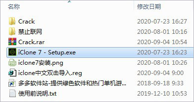 1、下载解压,得到iclone 7.8安装包和Crack破解文件夹、中文注册表;