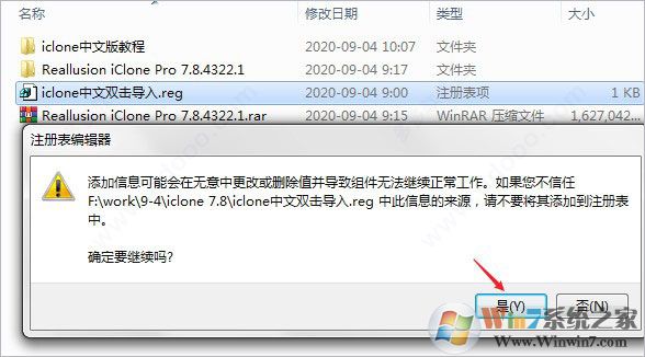 8、到这里,软件已成功破解啦,可还不是简体中文语言,再双击运行"iclone中文双击导入.reg",点击确定;