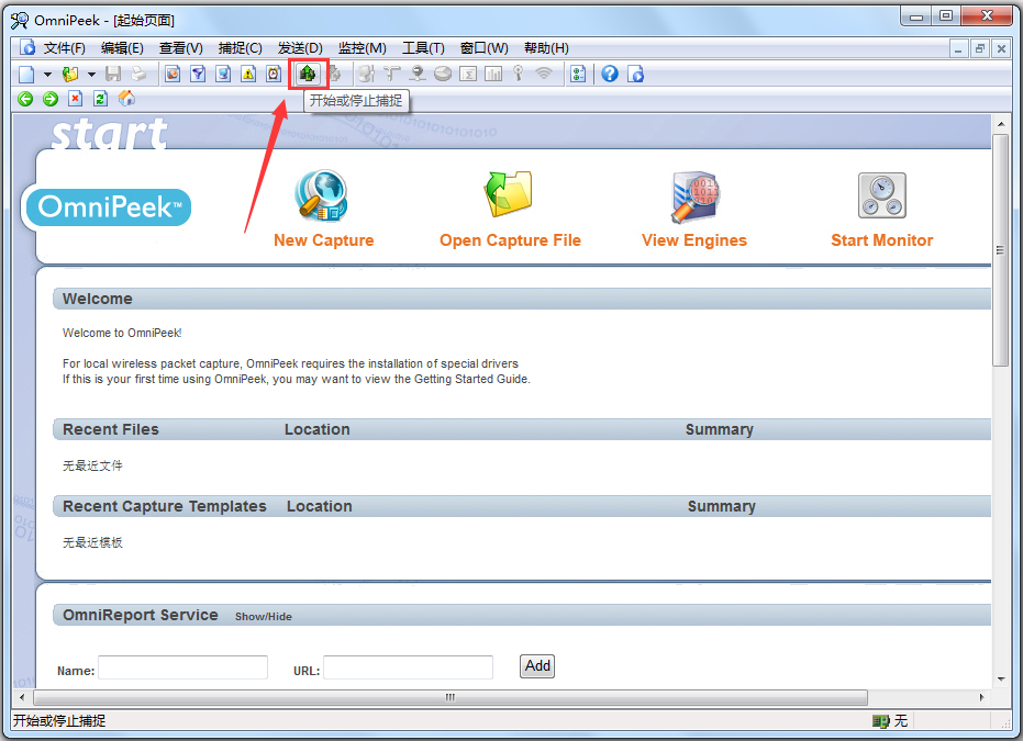 1.打开OmniPeek,点击new capture,在adapter中选择抓包用的网卡,这里我们选择无线网络连接。点击确定。这时,我们点击右侧的start capture,开始抓包。