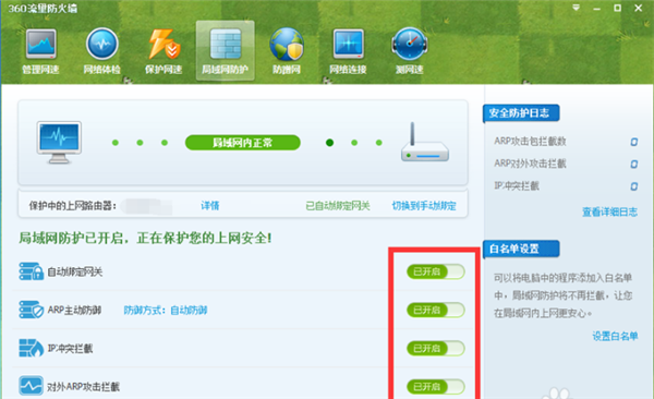 按照360安全卫士推荐开启项目,最后一项局域网隐身,不到万不得已的情况再开启,否则影像局域网用户。