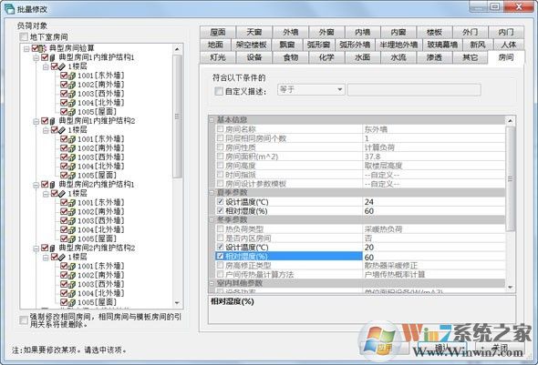 7、提供批量修改等编辑工具,可同时修改多个房间的多项参数信息。