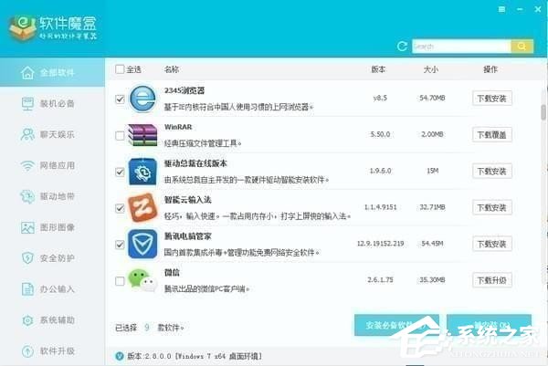 软件魔盒是一款由系统总裁推出的电脑软件管理工具,软件拥有丰富的资源,包括装机必备、聊天娱乐、网络应用、驱动地带、图形图像等分类,并且支持软件一键下载、软件升级等功能,能够为用户获取软件、定制离线安装包、直接在线安装!