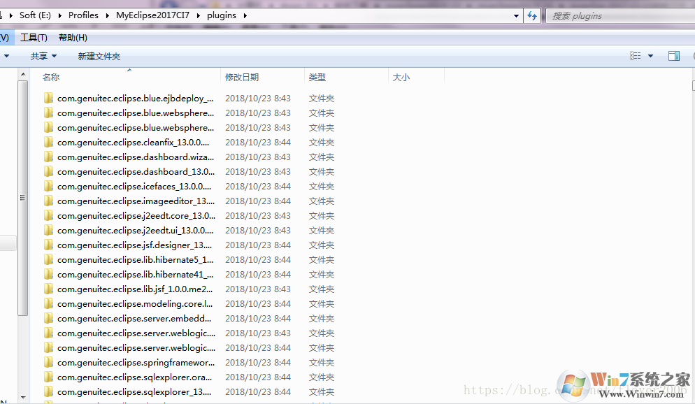 7.找到MyEclipse安装目录下的plugins文件夹,打开,如下图所示: