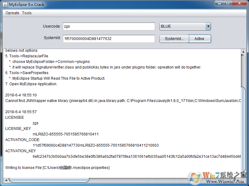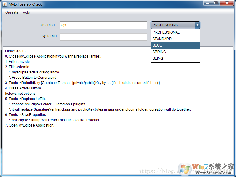 10.输入Usercode:任意字母或者数字(例如:zgs),选择Blue