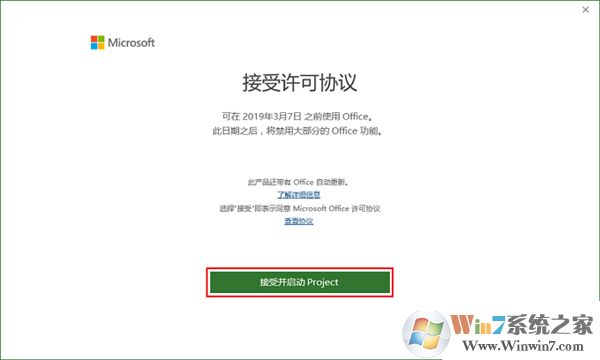 10、进入许可协议界面,点击【接受并启动Project】