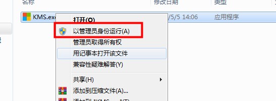 13、返回软件初始安装包,双击打开破解工具文件夹,然后找到KMS、exe,鼠标右击选择【以管理员身份运行】,一定要以管理员身份运行破解工具,否则会激活失败