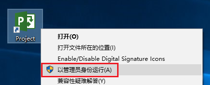 7、返回电脑桌面,找到生成的Project 2019图标,鼠标右击选择【以管理员身份运行】