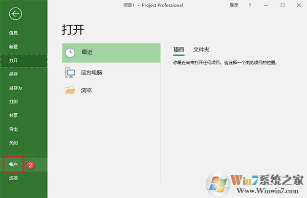 18、打开Project 2019软件,点击【文件】→【账户】